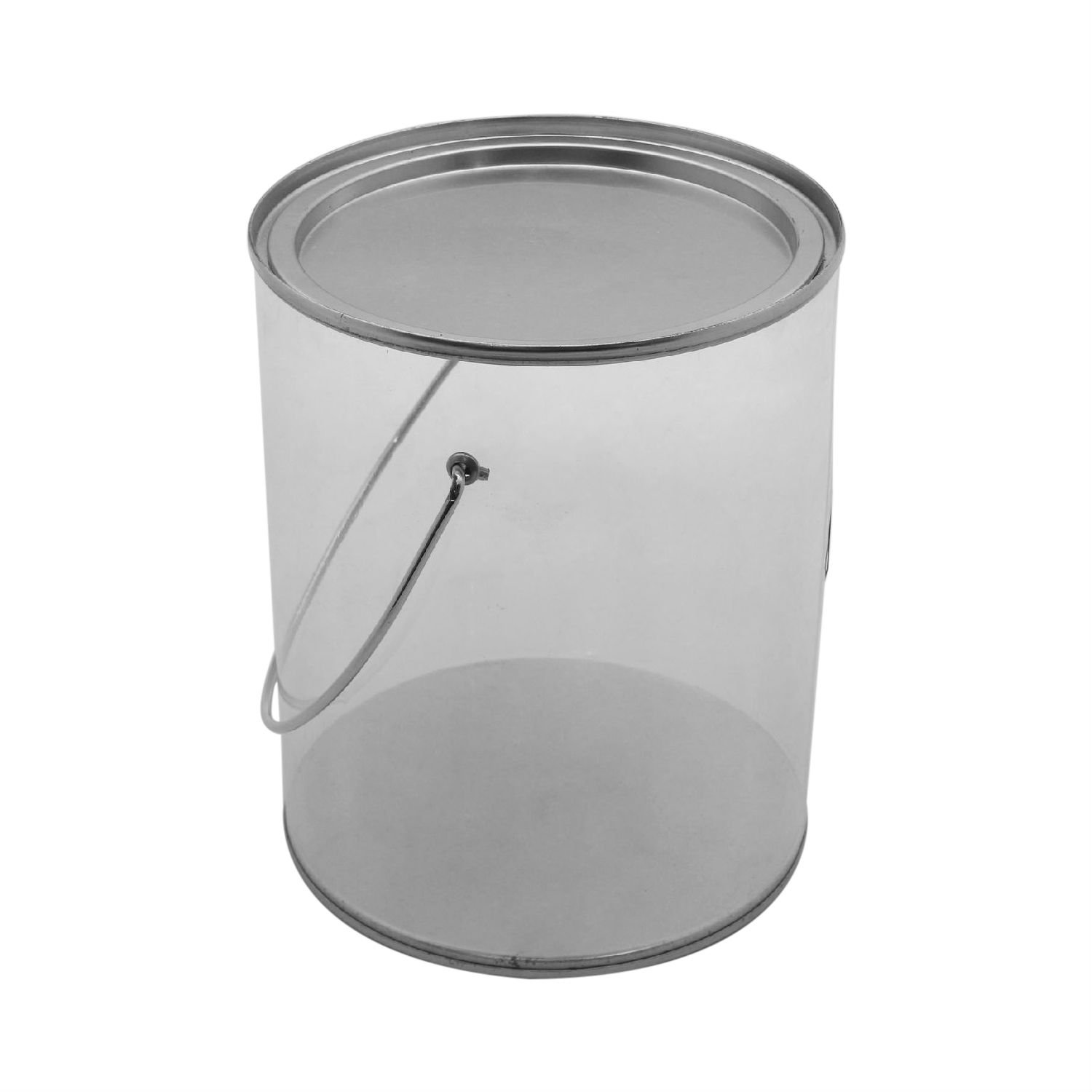Measuring 140mm in diameter, this cylindrical can is large enough for storing various household items. It is crafted with a metal cover and base, allowing seeing through the contents with the clear sides. Completed with a curved handle, this container provides a handy storage solution for household use.