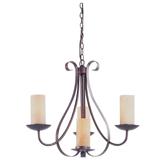 This functional chandelier features four round dishes for holding candles. The special design is finished through the vibrant but elegant swirling strips. It is an ideal lamp as well as decoration for a themed home decor.