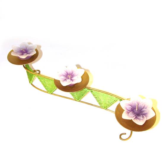 This is a beautiful triple candle holder that features three bronze coloured metal dishes.