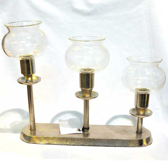 The candle holder boasts 3 stands to accommodate 3 candles each housed by a round glass vase for an elegant touch. The stands and the base are well polished in a golden tone. Make a romantic ambiance with this 3-candle holder.