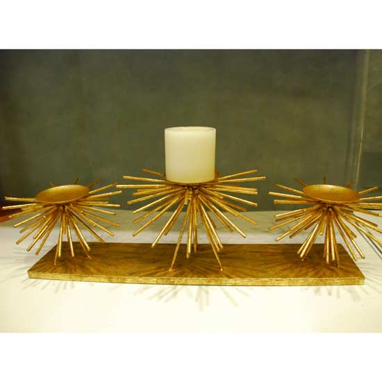 The candle holder comes in various sizes. It has a metal plate with several metal sticks beneath. Accentuate the style of your home with this candle holder in exquisite style.