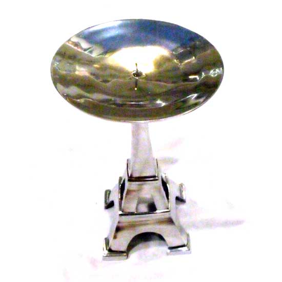 Featured is an ornate candle holder that is made of durable aluminum material. This aluminum candle holder is designed with an Eiffel-Tower-shape support base, boasting class and elegance. This aluminum candle holder is a worthy decorative item for your home.