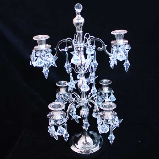 Featured is a gorgeous candle holder designed to hold 6 candles. The holder comes in a classic style with sparkling pendants. The surface is plated in silvery to give out alluring shine.