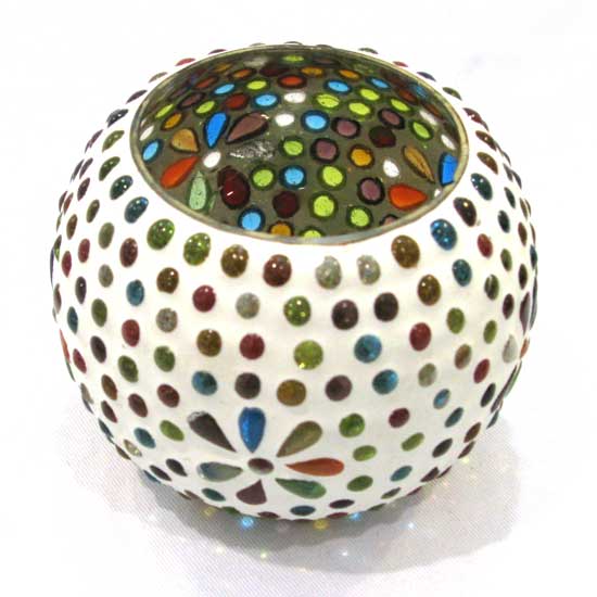 The stunning candle holder in a plump shape is expertly crafted by hand. It is constructed of durable clay stone and dressed with kaleidoscopic trimmings. The candle holder adds color to its candle as well as surroundings.