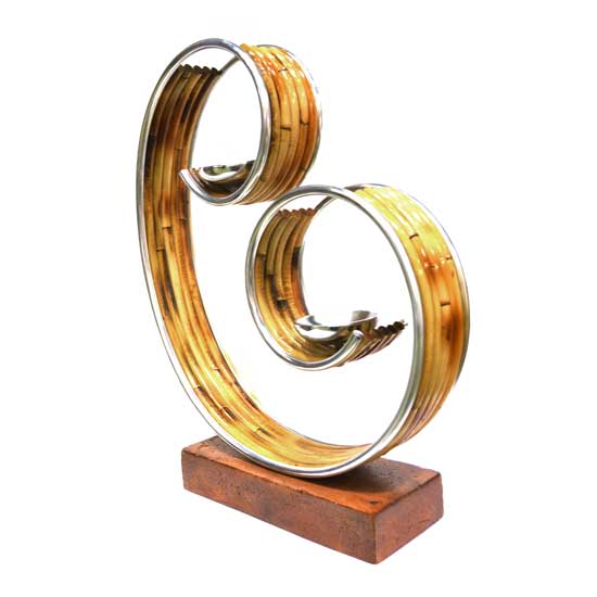 The Ralliu candle holder grabs people's eyes with its artistic curved appearance. It is structured with Arorog poles and two silvery metal sides. This unique stand is designed with two round dishes to holding candles.