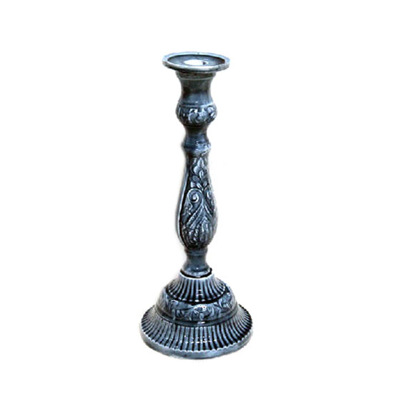Displayed is a candle holder made of metal yet revealing a ceramic finish. It is highlighted with sophisticated patterns for a vintage touch. This durable and tasteful candle holder is an ideal addition to your home.