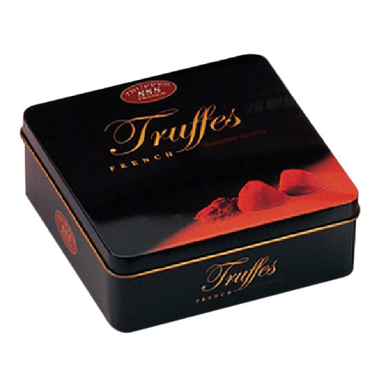 Featured here is a box designed for candy packaging. It comes in a square shape and is adorned with product images on the exterior. This box is durably constructed and offers good protection to the product inside.