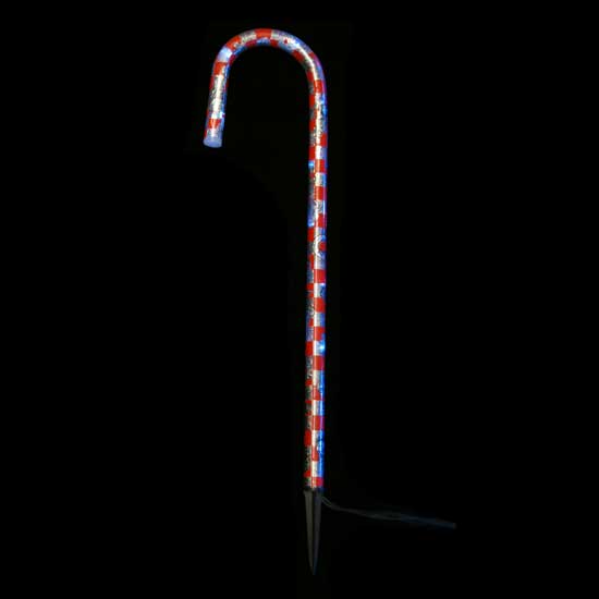This solar light flaunts a whimsical appearance of a red and silvery candy cane. It is fit with high-quality LEDs for bright and even illumination. This LED solar light is finished with a needle for firm anchorage to the ground.