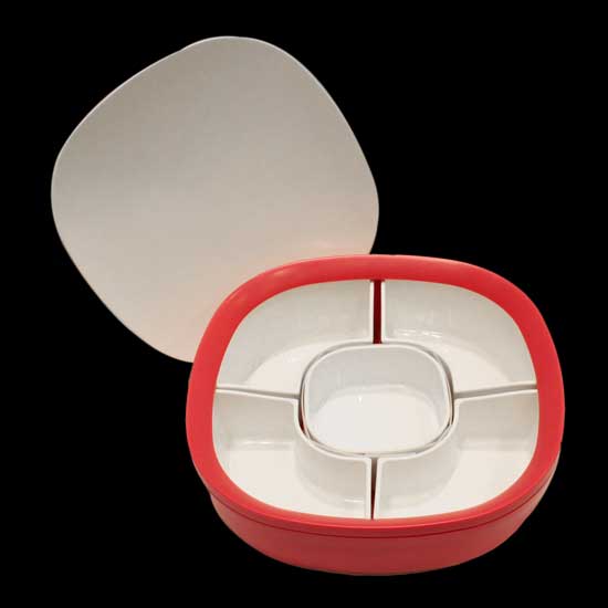 ArtiShare is a newly-designed candy tray for sharing your favorite sweets or snacks with friends and loved ones. There are five removable cells Inside the tray. The tray has a specially designed dust-proof cover, which helps to keep food clean and fresh as well as to collect shells and wrappers. The cover can also be used as a fruit plate.
