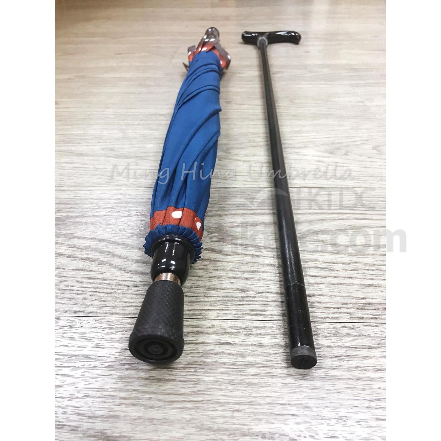 Shown here is a 2-in-1 umbrella with a detachable cane. The sturdy shaft ensures high durability. This cane umbrella is an ideal choice for the seniors who using the cane at the same time when it is raining.