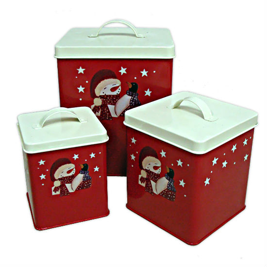 A heart-warming design reminiscent of festive occasions is showcased in these lidded containers. Children surely adore the cartoonish snowman and penguin in starry background. The snowy white lid along with a top bow handle makes this bin set extra convenient.