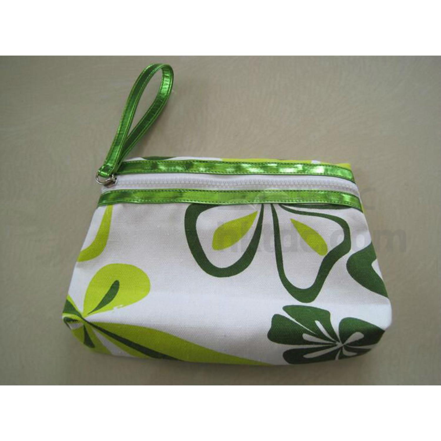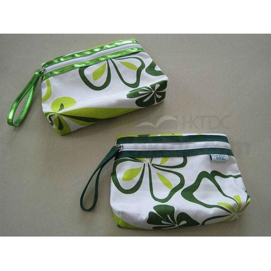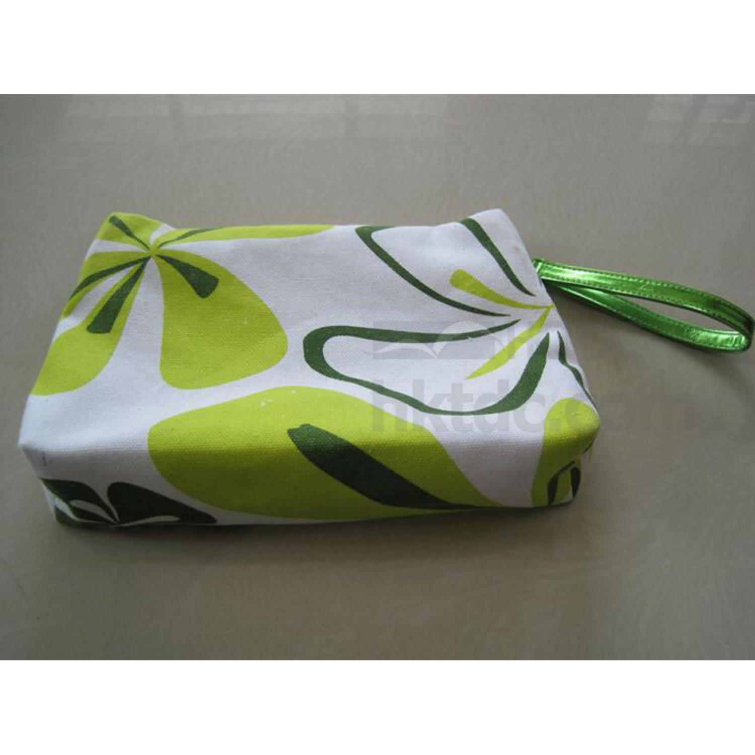 canvas cosmetic bag displayed is made of canvas with screen printed design in casual feel