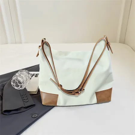 Canvas Hobo Bag Contrast Trim Trendy Handbag