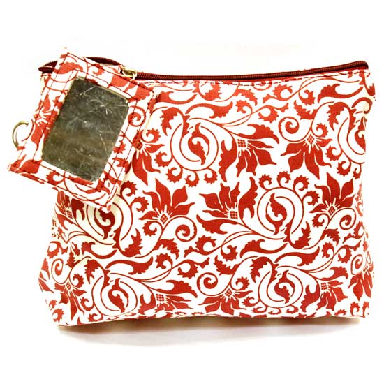 If your handbag does not have inner partitions, the featured pouch can help sort your personal belongings. It can carry cosmetics, pocket tissue, etc. The pouch comes with red flowery patterns.