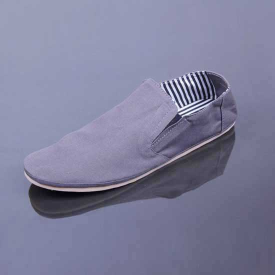 This gray canvas shoe is both durable and comfortable. The stylish shoe is lined on the inside with a striped fabric for some extra flair. The slip-on comes with an elastic neck which allows the shoe to slip on and off with ease.