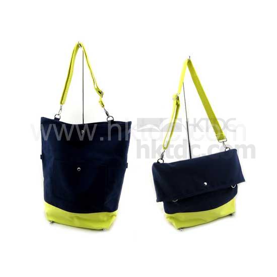 Displayed is a canvas tote that can be used in two ways for flexibility. The strap can either be buckled on the top or at the middle to change the bag's size and capacity. With a washed finish, this canvas tote is a fashionable choice.