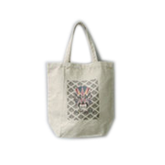 Outlined here is a tote bag in 100% natural cotton canvas. It is accented with a lovely cartoon character for added style. This featured tote bag is easy to mix and match.