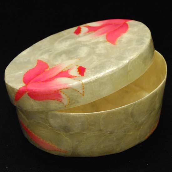 The capiz shell box is delicately made with skilled workmanship. The floral pattern adds a touch of style. This capiz shell box in pearly white color makes a great storage item for various items such as jewelry and miscellaneous items.