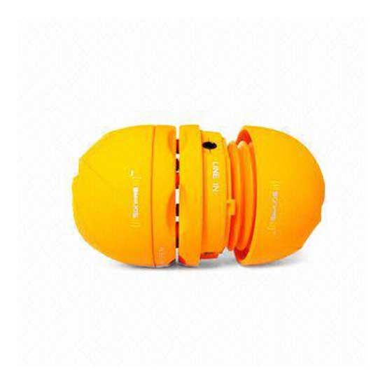 This prominent capsule speaker set flaunts a built-in magnet inside the speaker case for easy storage. It comes with a built-in rechargeable lithium battery. This compact capsule speaker is suitable for MP3 players, MP4 players, laptop computers, desktop computers, MD players, mobile phones, etc.