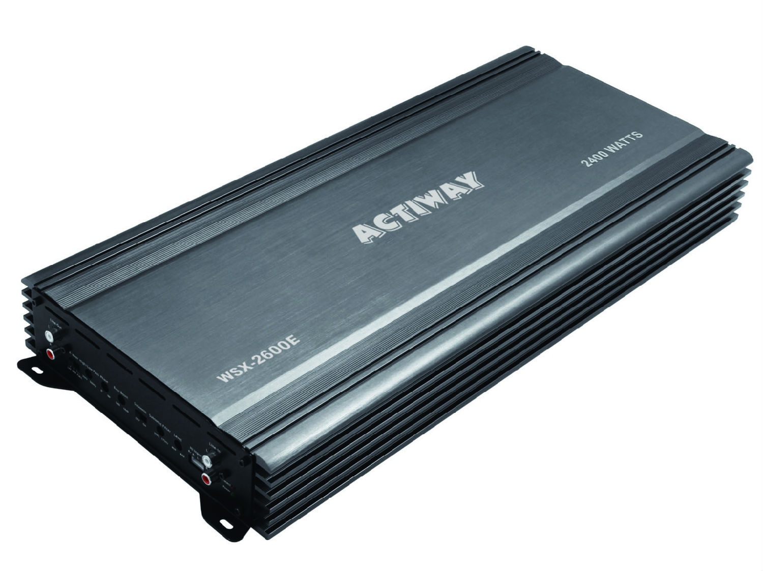 Super power full range car amplifier class AB, 1 Ω stable operation Die cast terminals/Gold plated RCA jacks Bridgeable, Illminated Logo Short circuit/Thermal/Overload/DC offset protection Variable phase shift/Subsonic filter Gain control/Bass boost