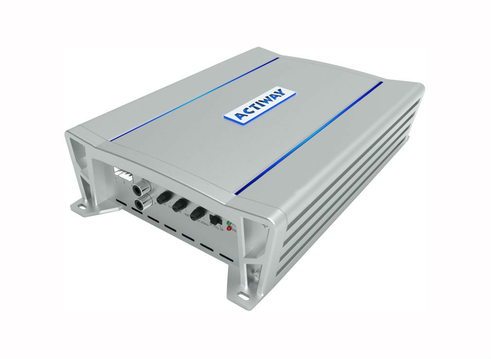 Super power full range car amplifier class D, 1 Ω stable operation Die cast terminals/Gold plated RCA jacks Bridgeable, Illminated Logo Short circuit/Thermal/Overload/DC offset protection Variable phase shift/Subsonic filter Gain control/Bass boost
