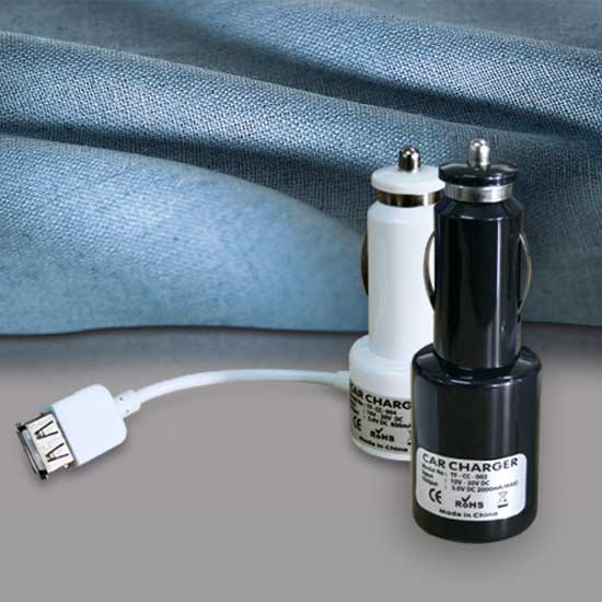This USB car charger features a compact design with a USB adaptor. It operates simply by plugging it into the car cigarette lighter. Charge any USB-powered electronic devices during travel with this USB car charger.