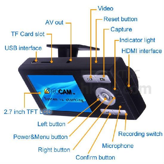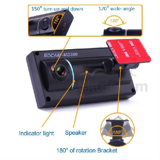 循环记录, 数字变焦, 重力感应, 麦克风, 运动检测, 夜视, 支持SD/MMC卡, 时间日期显示