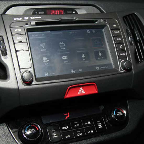 The displayed car infotainment system is suitable for Kia Sportage-R 2012 use. The big screen allows you to watch videos and use the GPS system with great visual enjoyment. The user-friendly interface ensures maximum operation convenience.
