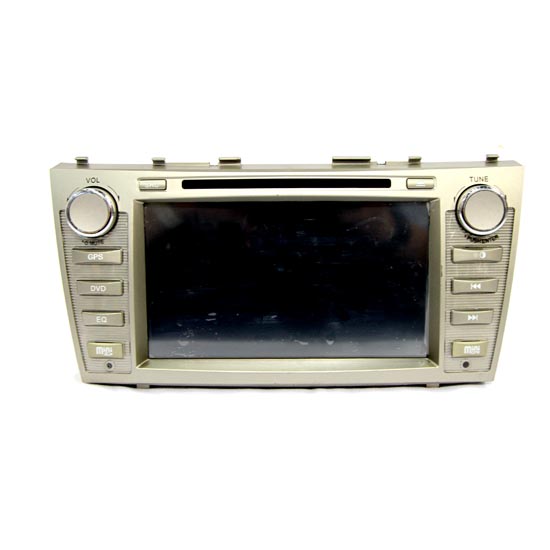 As shown is a car player fitted with an 8" digital touchscreen. This piece is equipped with a GPS and DVD player for utility. Moreover, it features a 4-band equalizer.