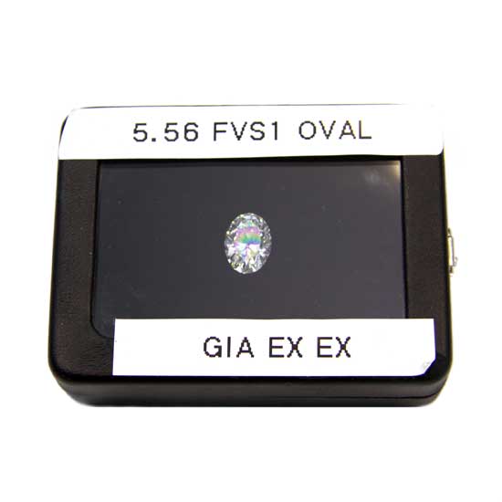 This is a carat diamond that is finely cut in an oval shape and weighs 5.56 carats. It is highly polished to exhibit dazzling sparkles and charm at all angles. This glamorous carat diamond will add a sense of luxuriousness to any jewelry design.