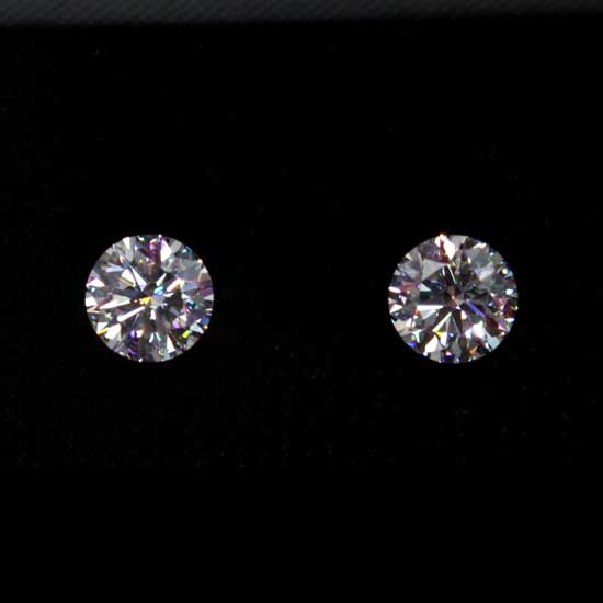 The carat-size diamonds are finely cut with exquisite craftsmanship and attention to details. The numerous facets bring irresistible sparkles. This pair of round-cut diamonds is ideal for high-end jewelry designs.