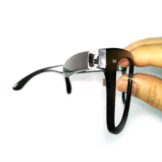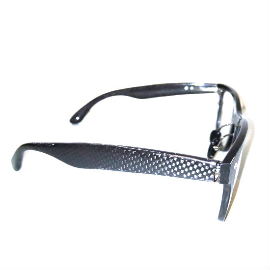 The presented eyeglasses frame is made to maximize wearing comfort. Taking the advantages of carbon fiber, this eyeglasses frame sports exceptional stiffness and strength while promises an ultra-lightweight wearing with two hollow temples. Coming designed in retro rounded square shape and with two metallic studs accented on the front of the frame, this frame completes any polished look effortlessly.