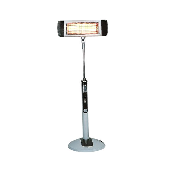 This carbon heater comes with a silvery and black finish. It employs carbon fiber heating elements as the reliable heat source. It is fitted with a remote control for added user-friendliness.