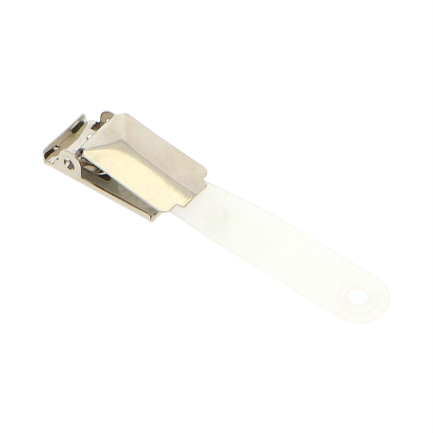 Attach your staff ID to your shirt with this piece. This piece features a clip with a plastic strap that is designed with a cap on one end and a socket on the other, so you can slip a card holder through the strap, press the snap button and clip it on your top. Grab this piece for your employees now.