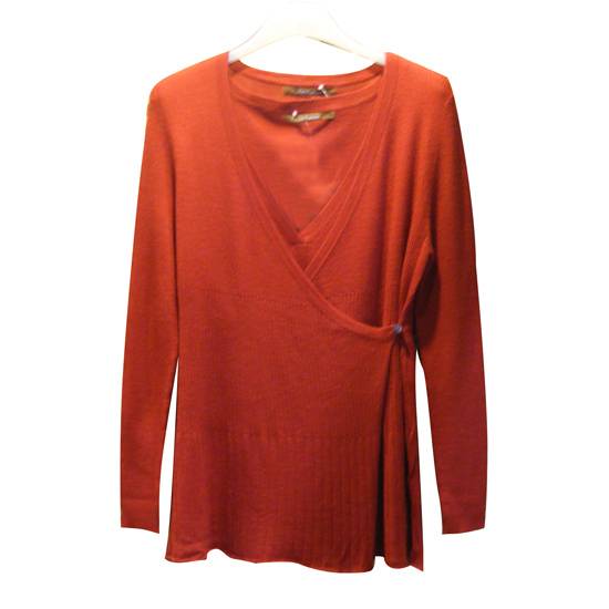 This is a set of ladies' wear including a cardigan and a vest. It is made of 100% cashmere and is orange in colour. The fabric is thin but warm which is suitable for wearing in autumn, winter and spring.