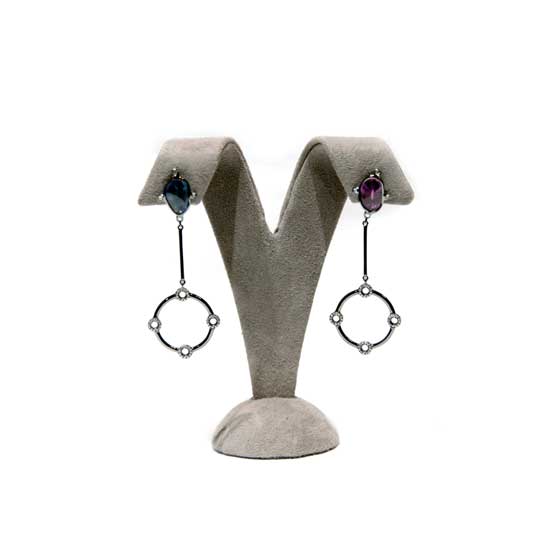 - Material: blackened gold, natural pink sapphire, natural blue sapphire and diamonds.