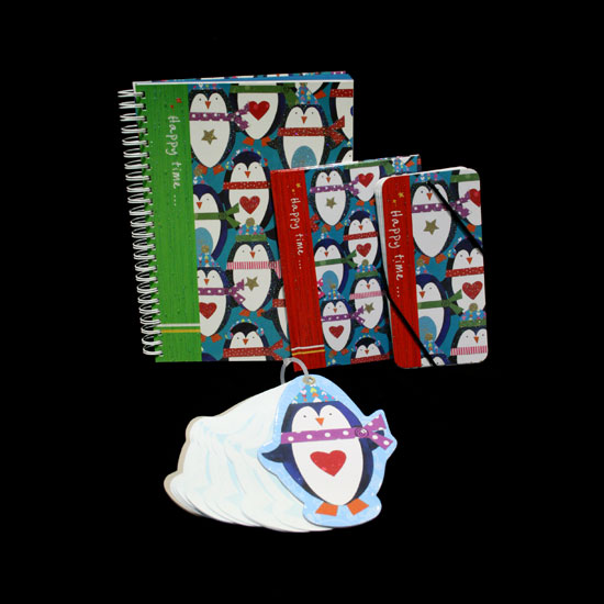 The picture displays a set of cartoon organizers finely printed with cute penguin patterns. The compact notebook can be used as a diary or schedule book to be carried around. It comes with various sizes and styles for your selection.