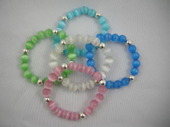 - Cat eye bracelet with round or facet cat eye beads in any colors.