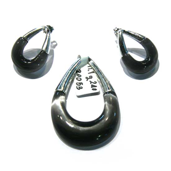The jewelry set includes a pendant and a pair of earrings in a delicate design in water-drop shape. Each item is embellished with a cat eye stone and polished 925 silver, adding a sense of endless elegance to the design. Complement your fashion ensemble the classy way with this pretty jewelry set.