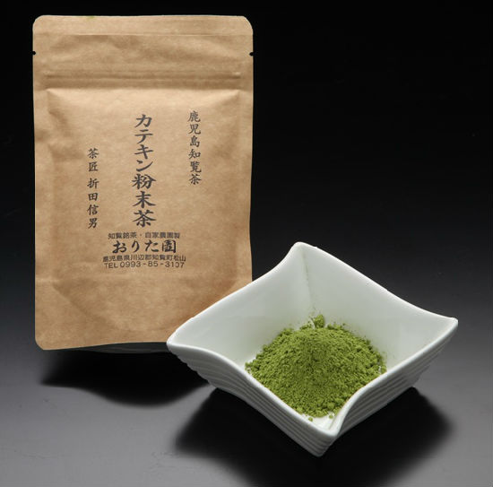 This green tea powder is specially made by Orita-en which is popular for its reliable and high quality in Japan. We organically grow tea trees under the adequate sun light. Of course no agricultural chemicals are used. You can get all of the healthy components of this naturally grown tea leaves into your body. This product is especially blended with Catechine rich leaves which have anti-aging, antibacterial and deodorizing functions. It’s good not only for drinking but also for cooking or sweets topping.
