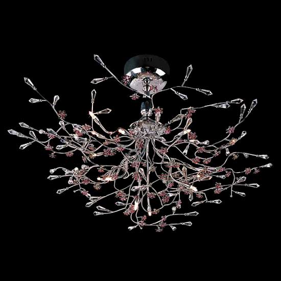The ceiling lamp is made with skilled craftsmanship to showcase aesthetic beauty. The red and transparent bulbs form elegant floral patterns. This delicate ceiling lamp is an ideal lighting fixture for your house.