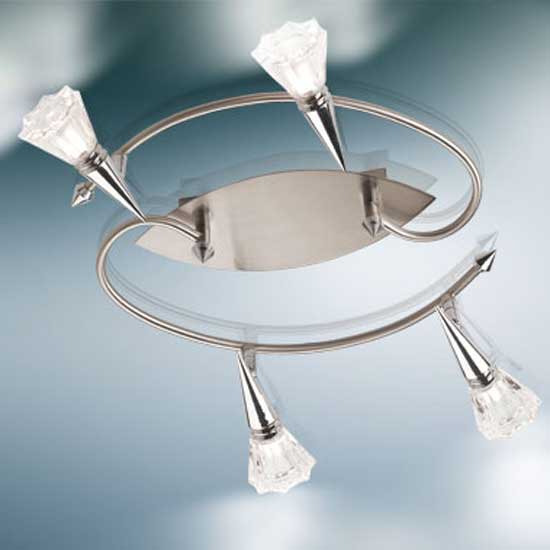 This ceiling lamp boasts a graceful appearance with rotating arms. The glass lampshades fixed on the arms are crafted with delicate details. The arms can be bent freely according to our preference.