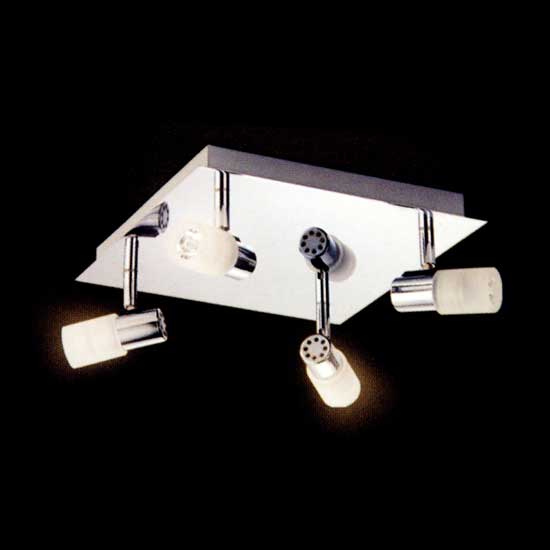 This ceiling spotlight features a square-shaped metal base fitted with four small spotlight heads on the corners. The top-quality spotlights emit bright and intense light for spot illumination. The highly polished finish completes the look of this spotlight.