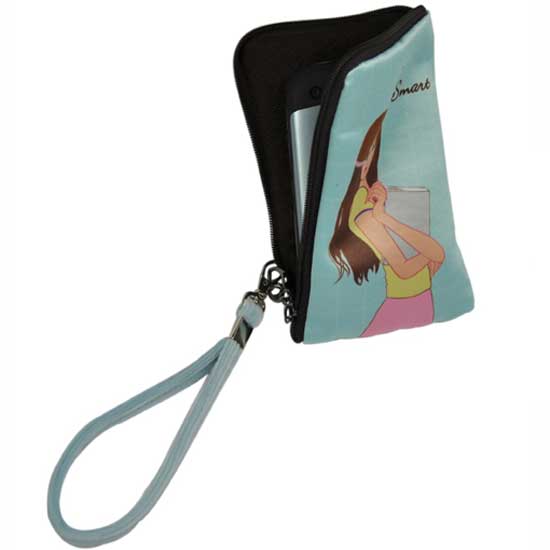 This cellphone bag is made with durable microfiber fabric. Girlish graphics are printed on this bag to attract kids and teenagers. Finished with high-tech digital printing, the color would never face or wear out with washing.