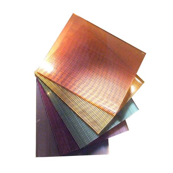 These cellulose acetate sheets are made from natural raw material such as cotton flake and wood pulp. It is used for producing cellulose acetate sheet for manufacturing optical frames, hair ornaments and other accessorie. The pattern of these sheet are balanced stripes in purpul, pink, green, yellow and orange colors.