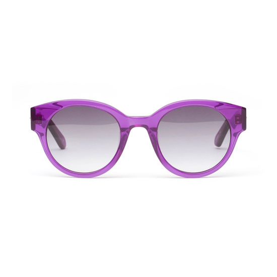 This is a pair of cellulose acetate sunglasses with an eye-catching appearance. It features a durable frame in bright purple. This pair of sunglasses will add a touch of style to your look.
