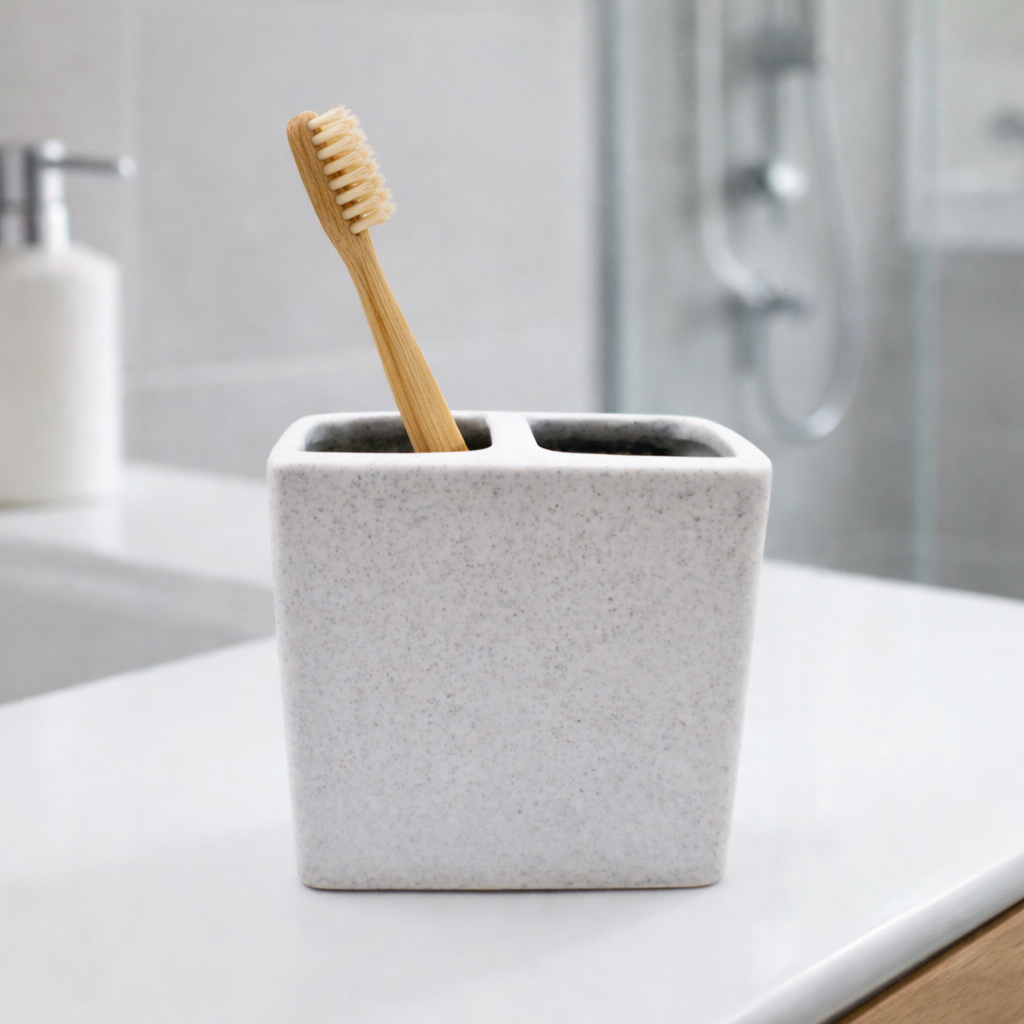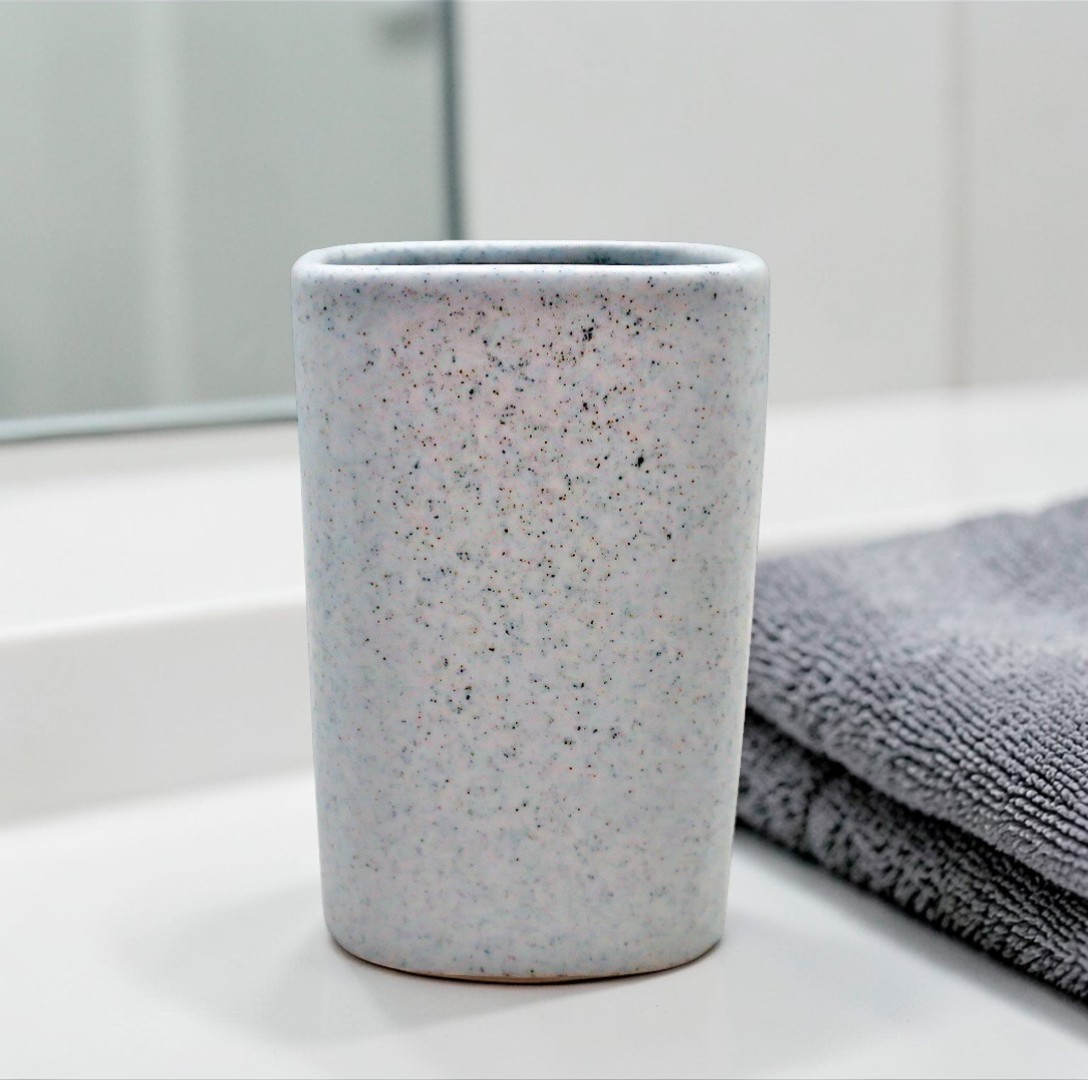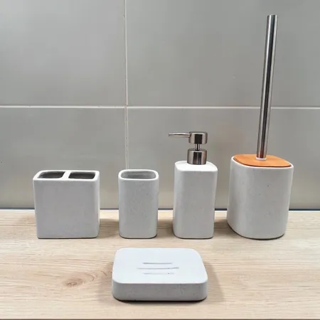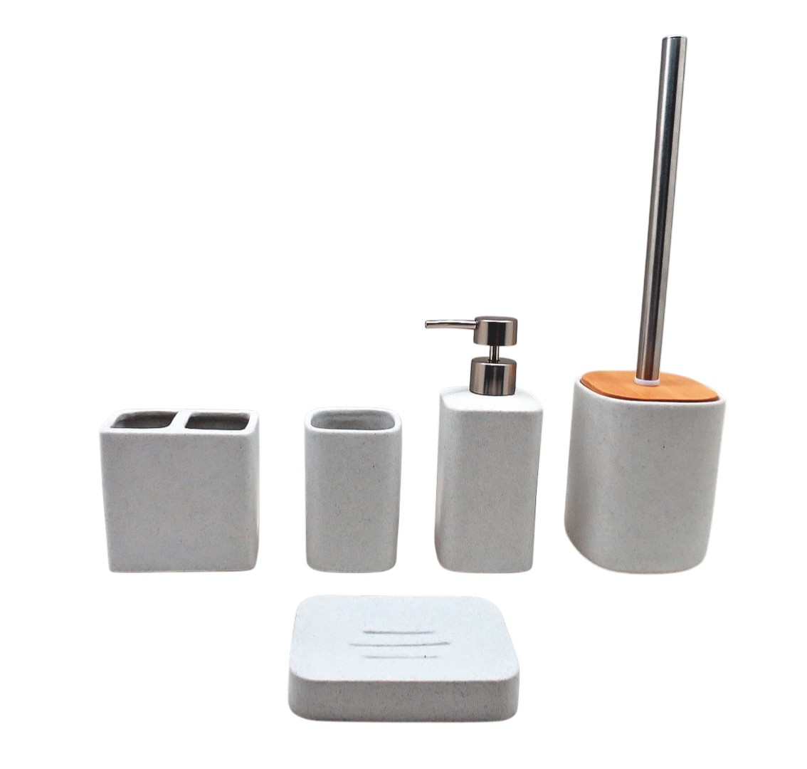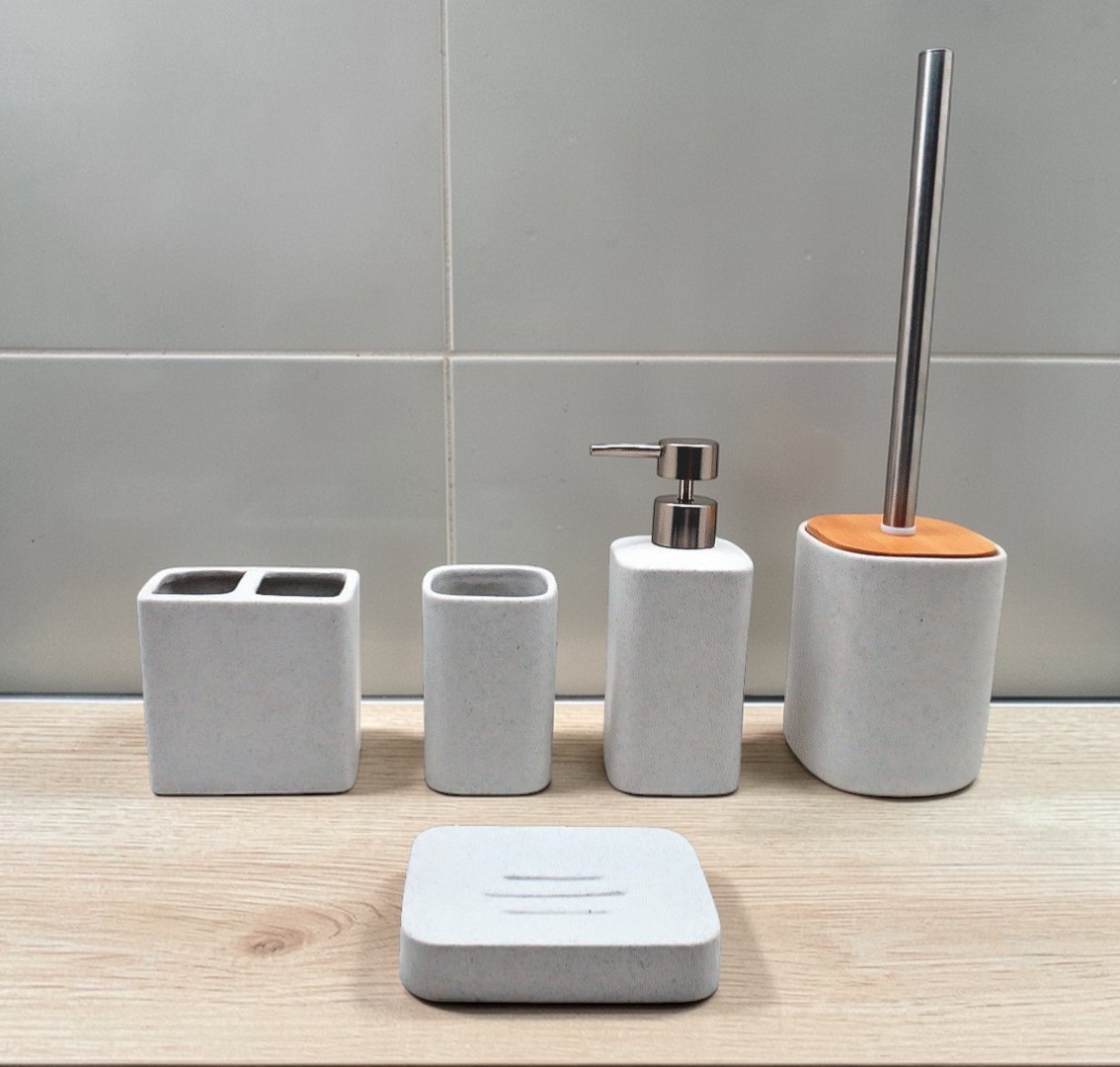 CERAMIC BATHROOM ACCESSORIES SET W/SAND CLAY IN MATT GREY