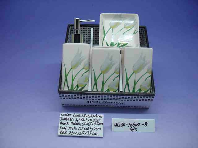 - Dolomite quadrangle bathroom set, include lotion pump, tumbler, brush holder, soap dish.