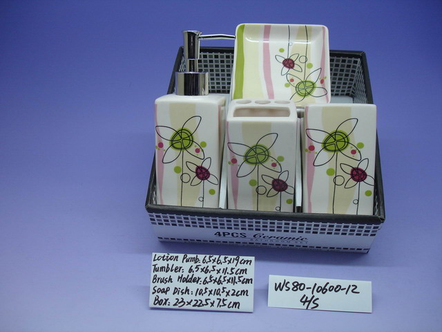 - Dolomite quadrangle bathroom set, include lotion pump, tumbler, brush holder, soap dish.