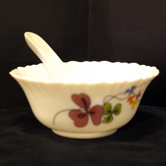 This set comes with a ceramic bowl with a wavy edge for a unique style. It boasts beautiful printed clover leaves which offer a graceful touch. The set makes exquisite tableware.
